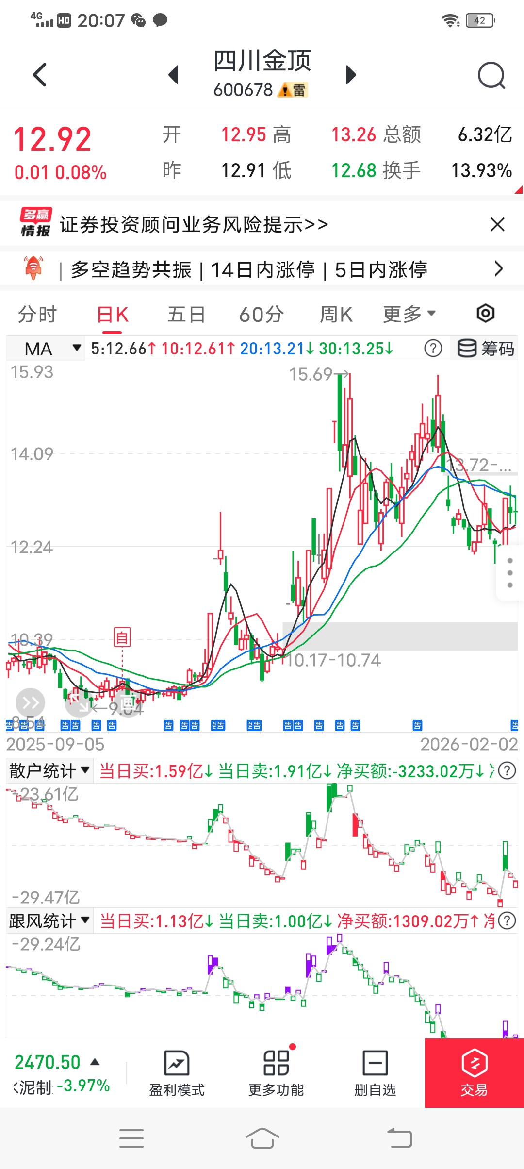 $四川金顶(SH600678)$ 连续测试大单,被对接散户小单坐轿,这下可以拉升了,被对接散户必须要学会看盘和坐轿,不会看盘看量化的话,不能动。其他未被对接散户必须要跟机构吃货抛货的。