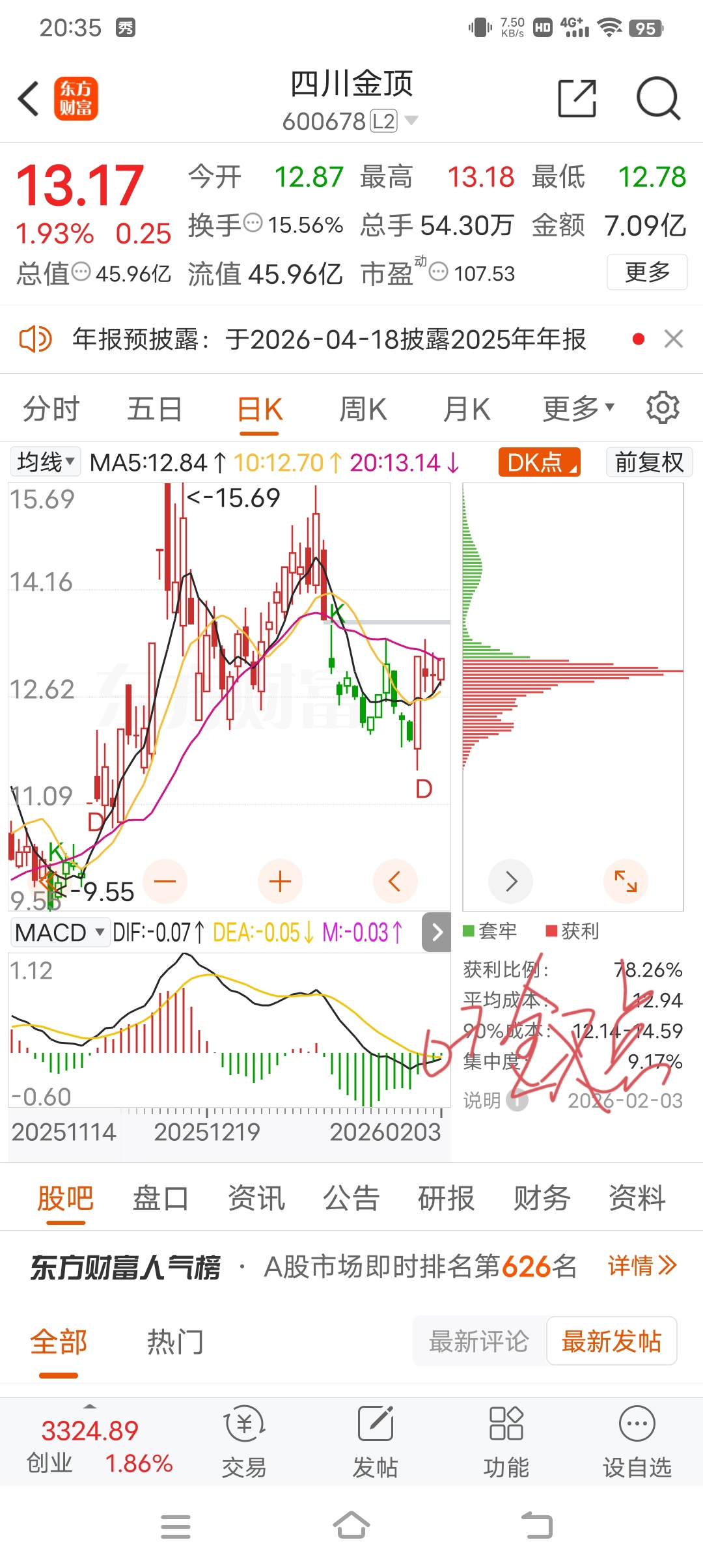 $四川金顶(SH600678)$ #炒股日记#