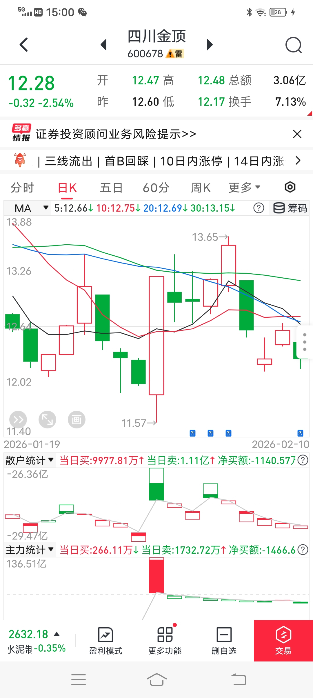 $四川金顶(SH600678)$ 经传多赢手机版数据123元年费。 过年了,得等一等,不着急,又没有大单,赚不了钱的,。。。。今天的堆量不知道会不会被暗庄量化发现,中单扣底,不知道死守。。坚持住,等大单,要干就干个大单过来!!!