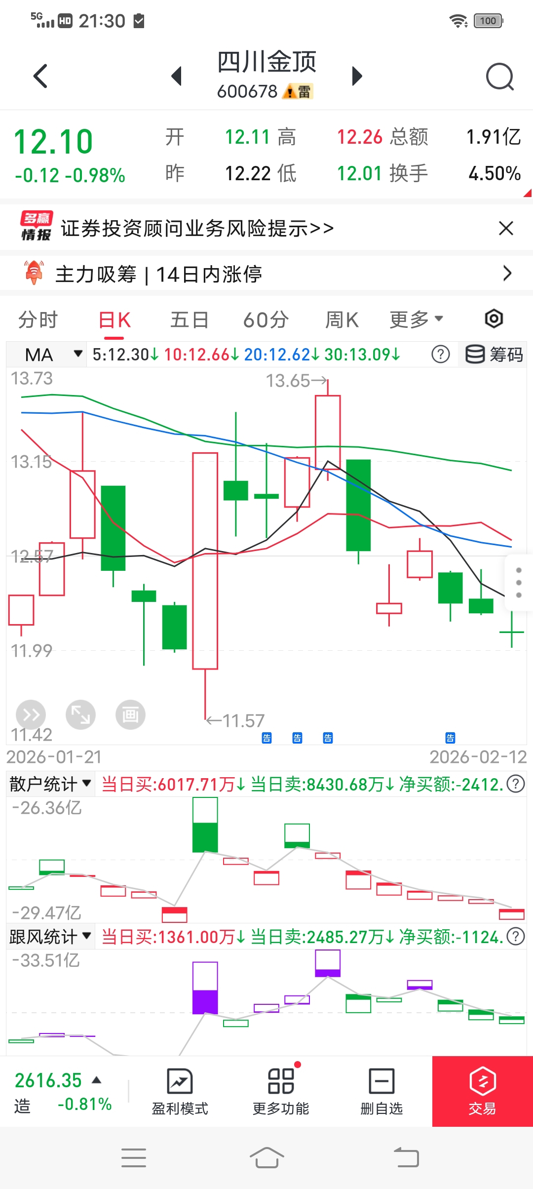 $四川金顶(SH600678)$ 机构你这卖超了吧?没有那么恐惧,你卖那么多再?