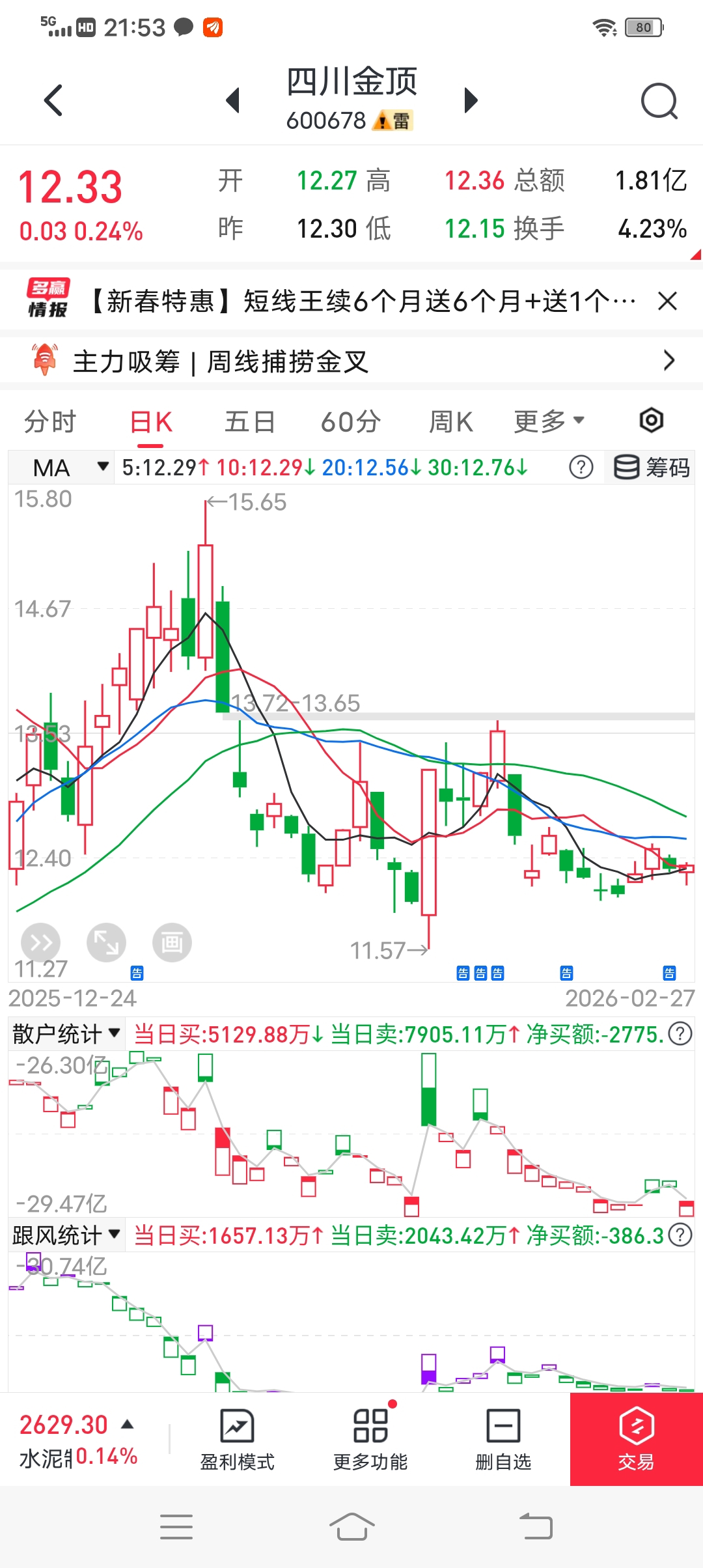 $四川金顶(SH600678)$ 经传多赢手机版数据123元年费。暗庄量化控盘开盘价就是中单吃多少中单抛多少,不能抛超太多。所以好多中单也没有悟道。必须得让两个量化都吃货比较安全。暗庄量化程序大单抛货不能发现堆量卖货,也是平开。