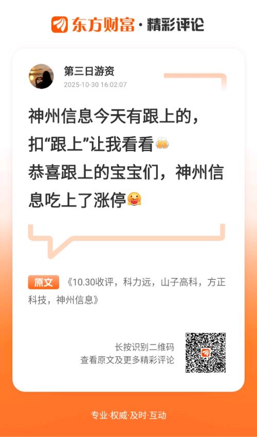 恭喜跟上的宝宝们,神州信息吃上了涨停