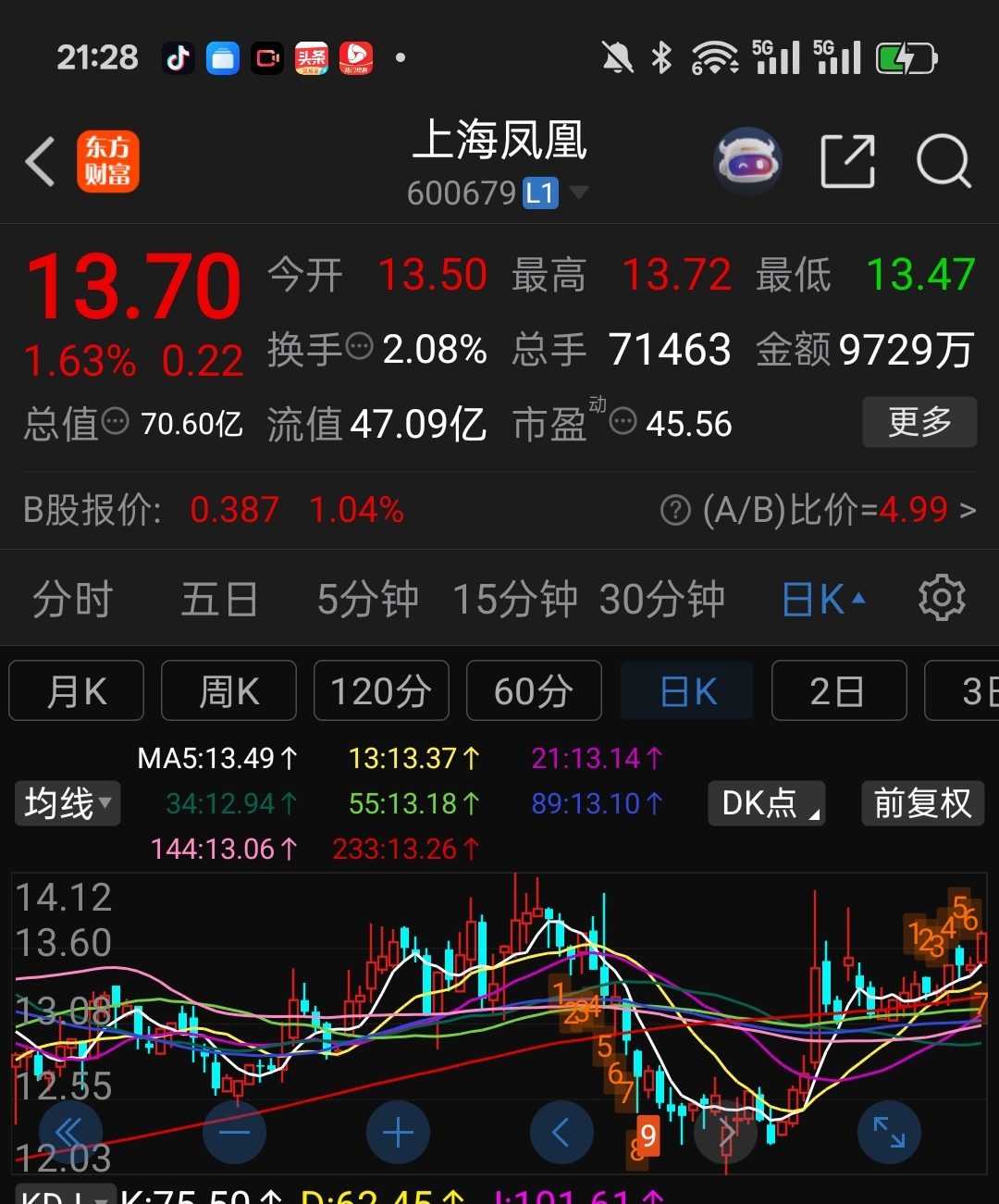 老鸭头已经开始张嘴了,下一步k线沿着5日均线天天上涨,就是一个大鸭子头,你还看不