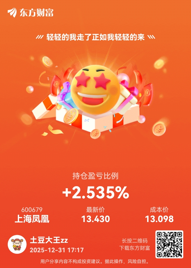 $上海凤凰(SH600679)$ 这么长时间,嗯,就当存银行了