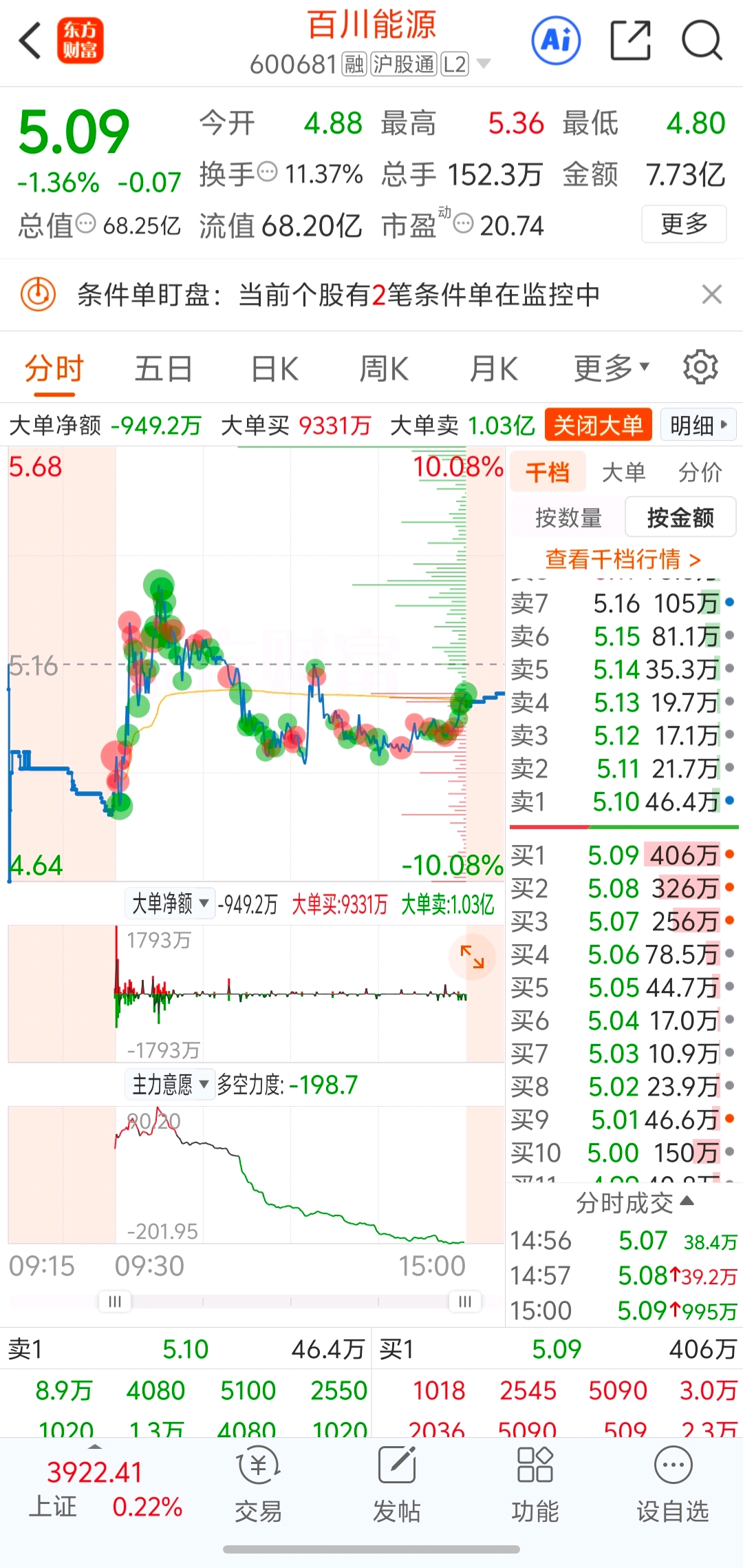 $百川能源(SH600681)$ 明天有希望涨到5.35。跟今天一样,不想被套的就把握好机会,选择在合适点该跑就跑。