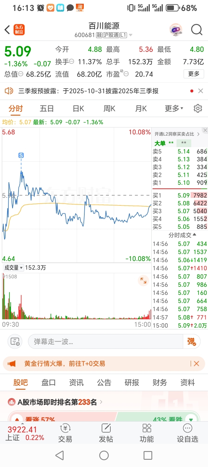 $百川能源(SH600681)$ 卖了你追了武汉控股一天又白干了