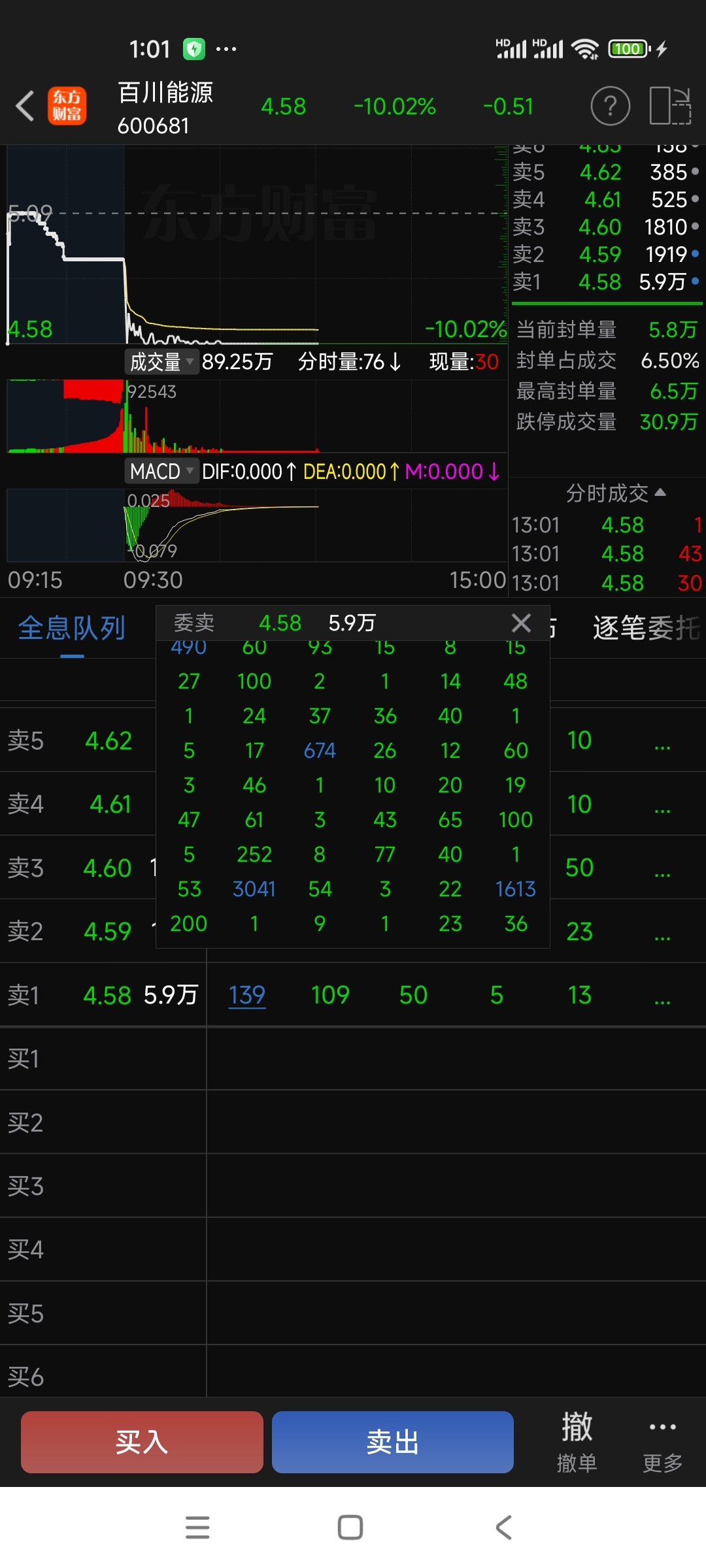 $百川能源(SH600681)$ 卖一主力还在卖,散户还在买,然后亏了论坛发牢骚说被割了