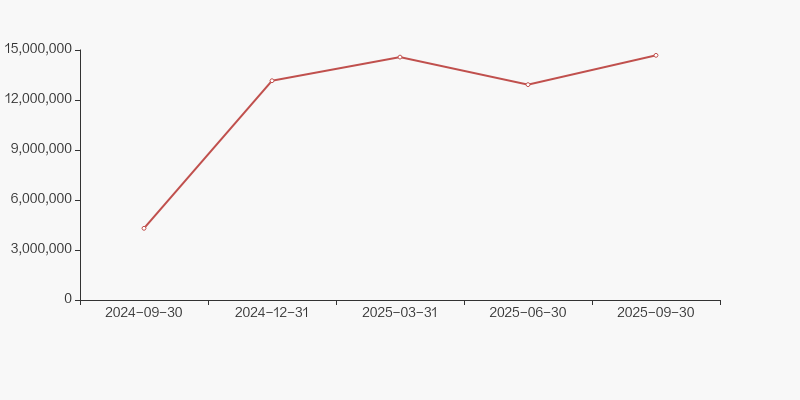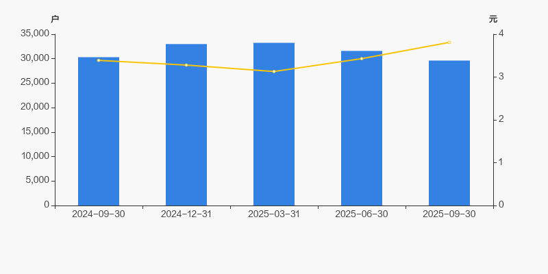 截至2025年9月30日,公司最新总股本为13.41亿股,其中流通股本为13.4亿股。户均持有流通股数量由上期的4.24万股上升至4.52万股,户均流通市值17.23万元。