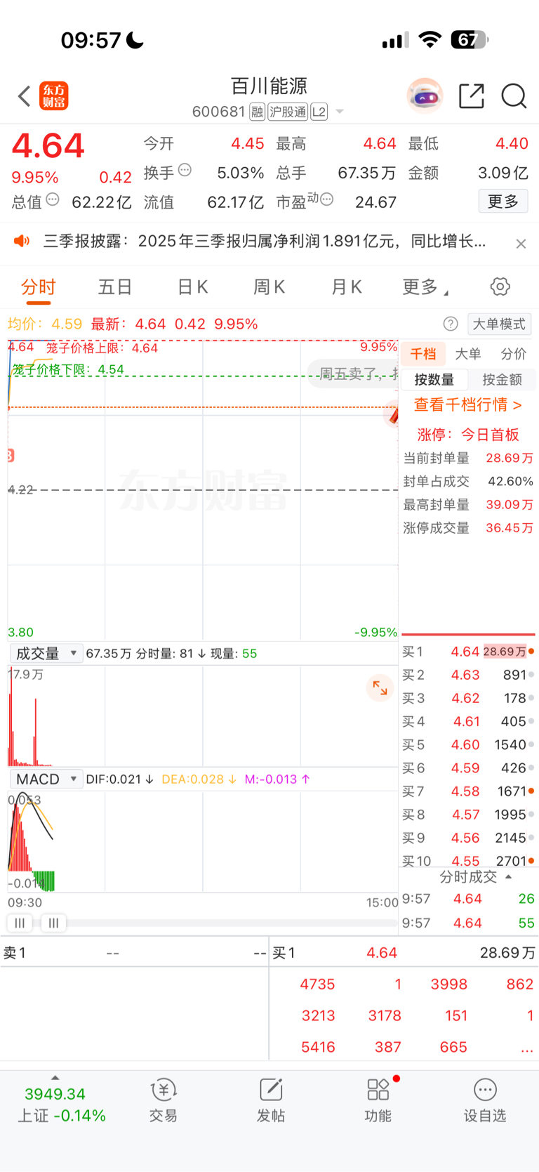 $百川能源(SH600681)$ 周六挂的单,你们觉得是洗盘,我觉得是出货,分批出,开板又封让你们认为是洗盘,实际上就是为了吸引散户进来买,封单太小了,走不远的,拉到5块多差不多了
