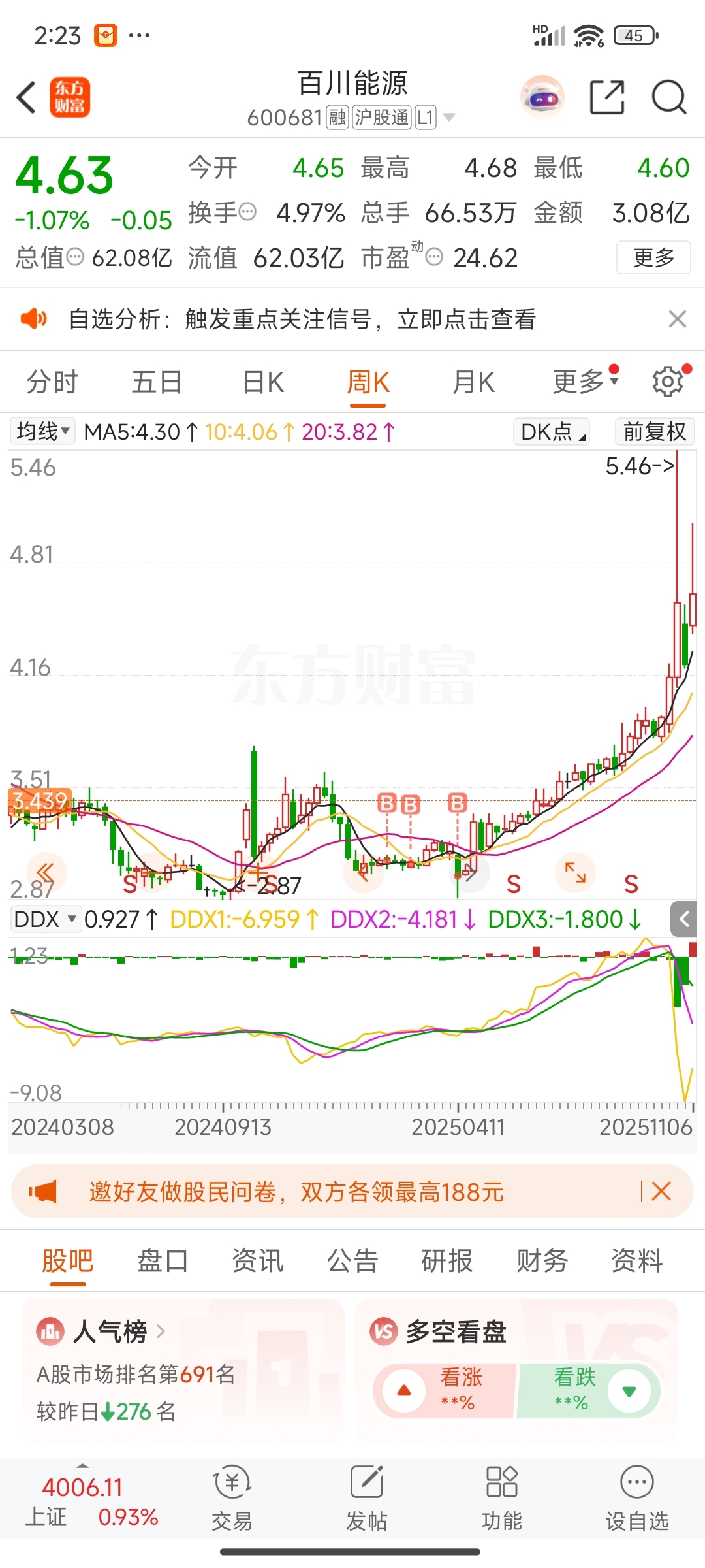 $百川能源(SH600681)$ 各位股神们给看看,还能不能涨了,我准备出了。