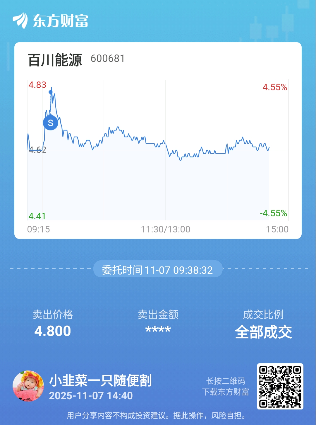温馨提示: 1.根据《证券法》规定,禁止编造、传播虚假信息或者误导性信息,扰乱证券市场;2.用户在本社区发表的所有资料、言论等仅代表个人观点,与本网站立场无关,不对您构成任何投资建议。用户应基于自己的独立判断,自行决定证券投资并承担相应风险。《东方财富社区管理规定》