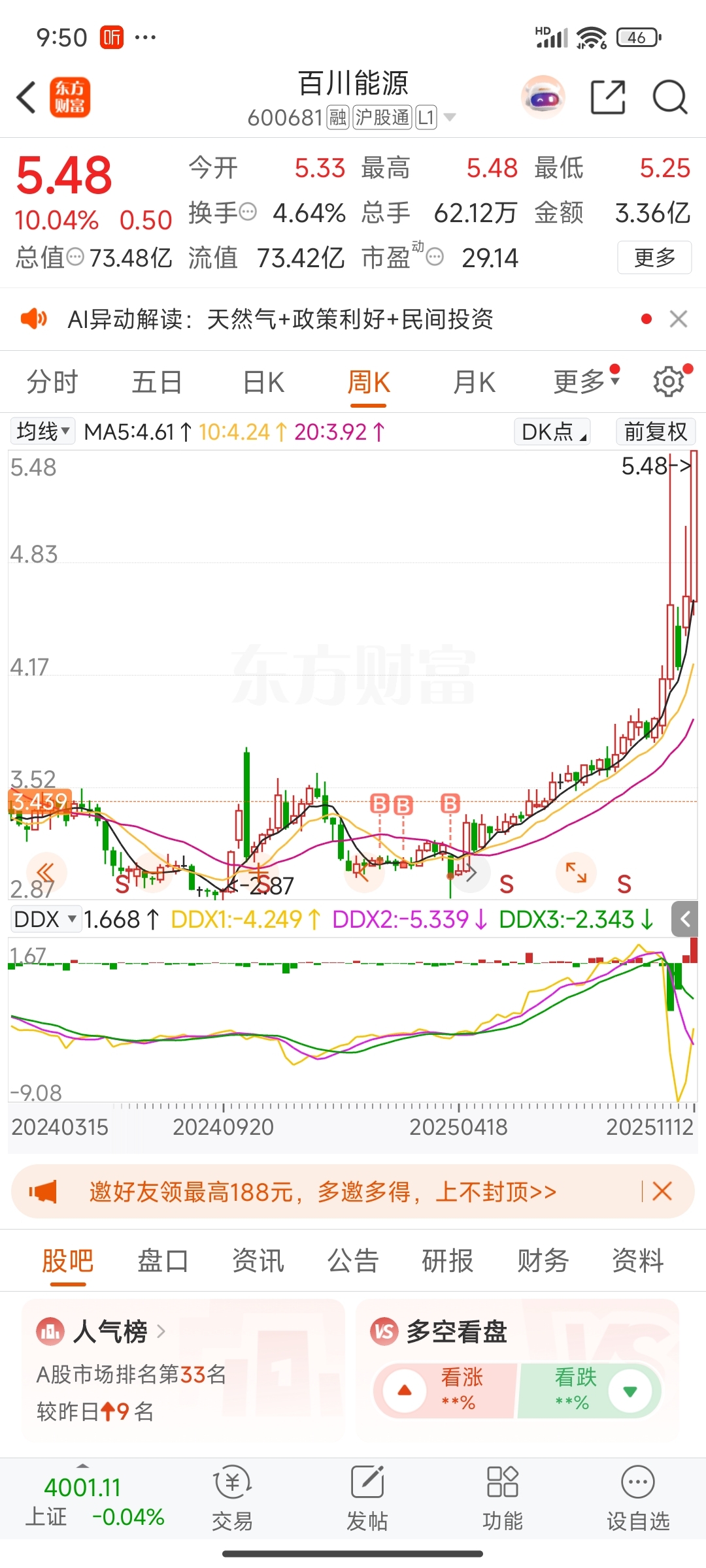 $百川能源(SH600681)$ 一直犹豫没出,三块多的本。