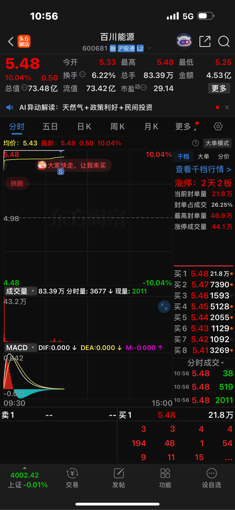 $百川能源(SH600681)$ 落袋为安 不贪了