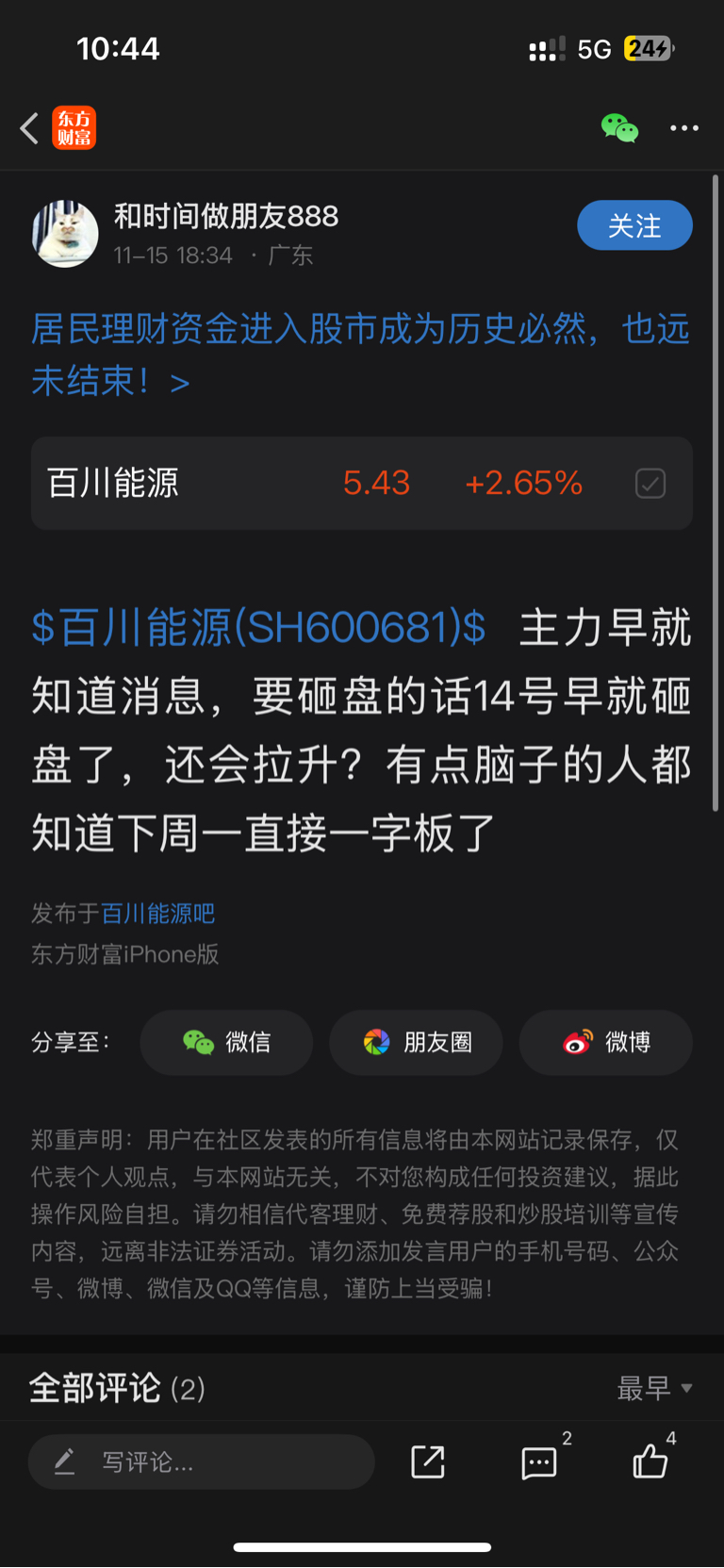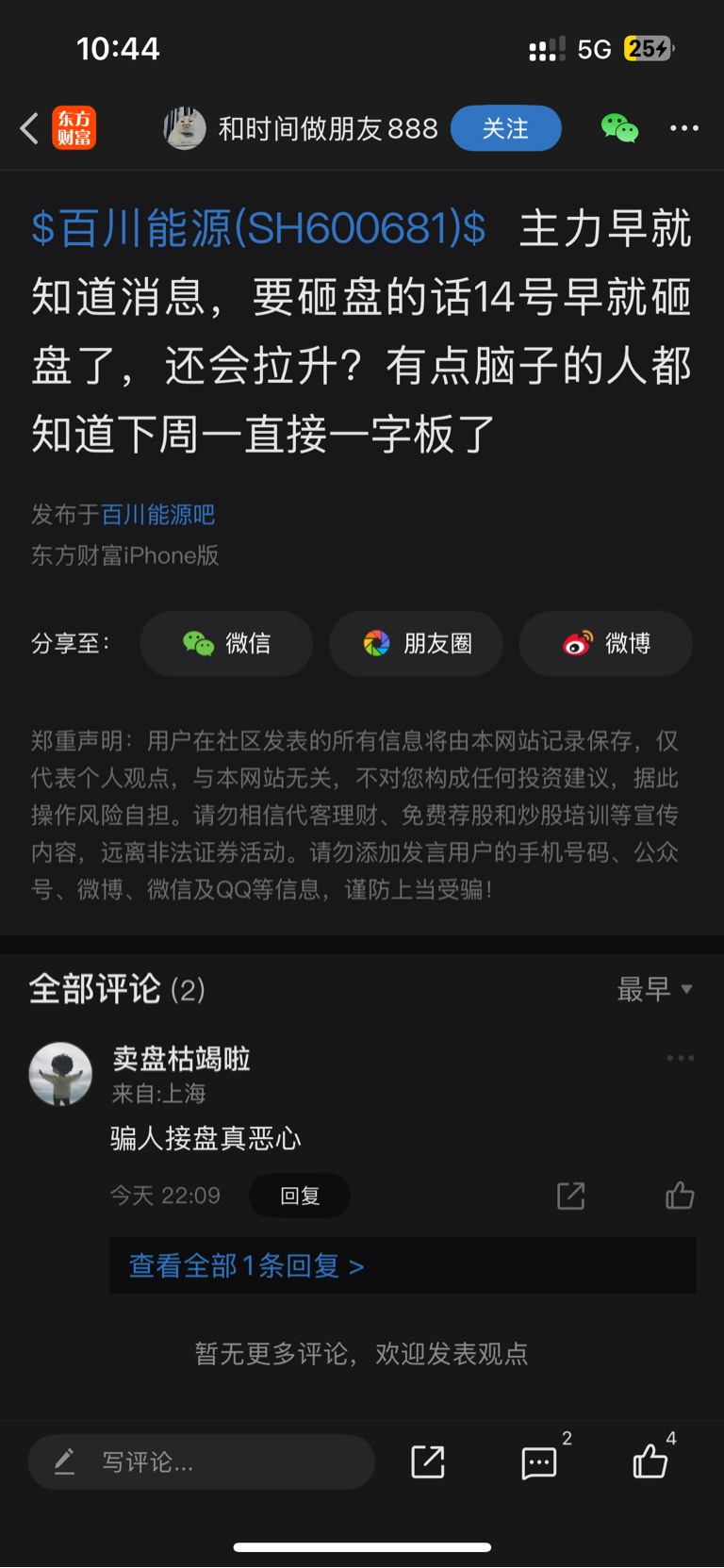温馨提示: 1.根据《证券法》规定,禁止编造、传播虚假信息或者误导性信息,扰乱证券市场;2.用户在本社区发表的所有资料、言论等仅代表个人观点,与本网站立场无关,不对您构成任何投资建议。用户应基于自己的独立判断,自行决定证券投资并承担相应风险。《东方财富社区管理规定》