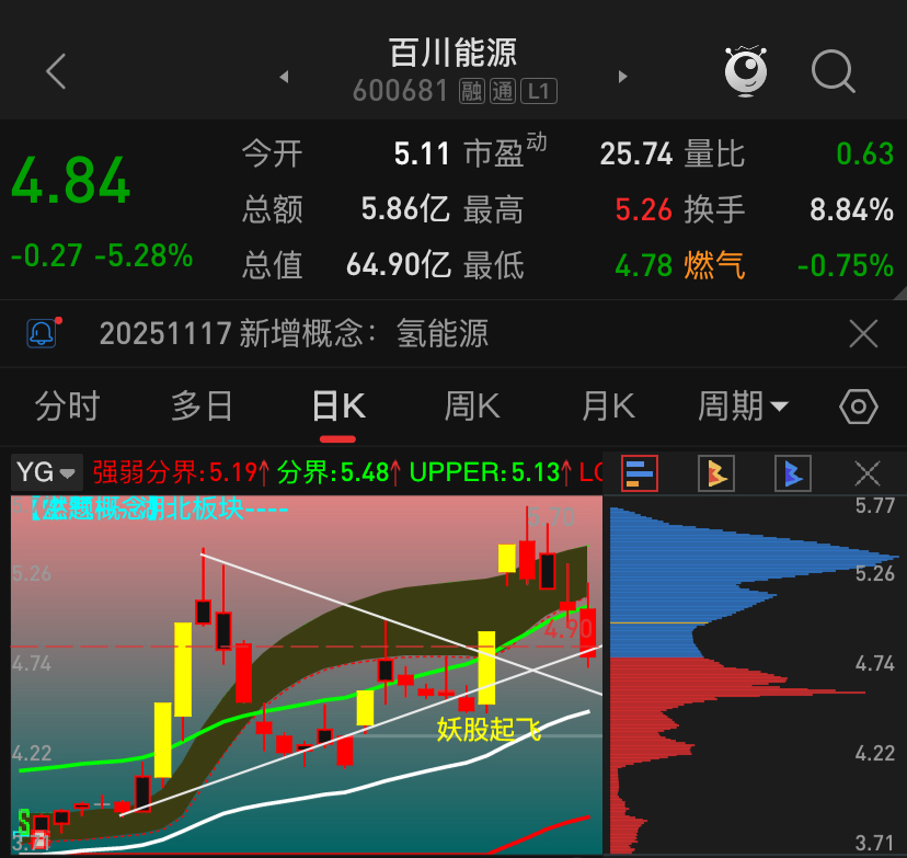 $百川能源(SH600681)$ 主力后面怎么画,把上面的都挂山顶?最近大宗5.36,距离大宗跌了近10%,20日线今天也踩了,周线5周线4.74还没踩,不排除下一步踩5周线,这个位子主力想撤退也是轻而易举,支撑保卫战