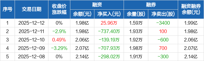 百川能源:融资净买入25.96万元,融资余额1.98亿元(12-12)
