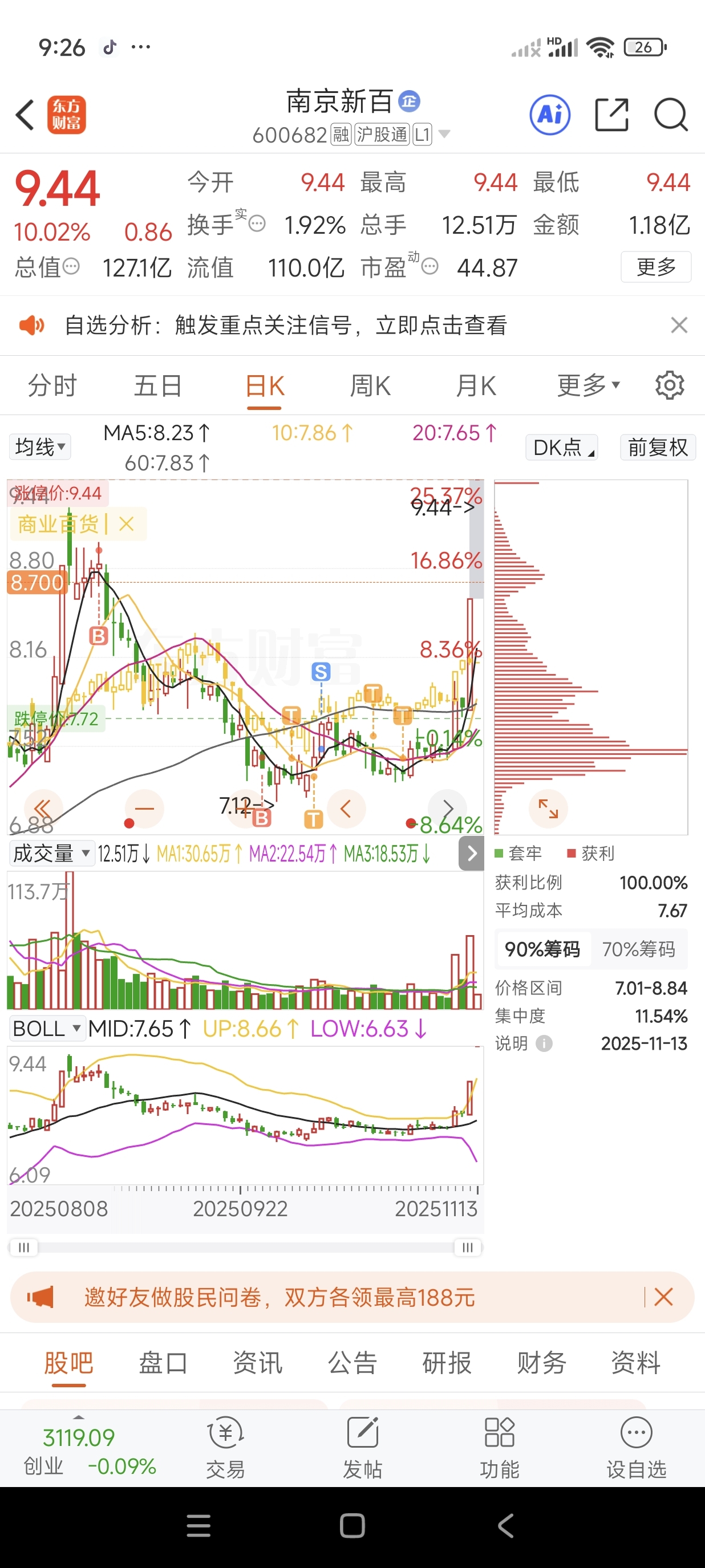 $南京新百(SH600682)$ 这都能解套?厉害了