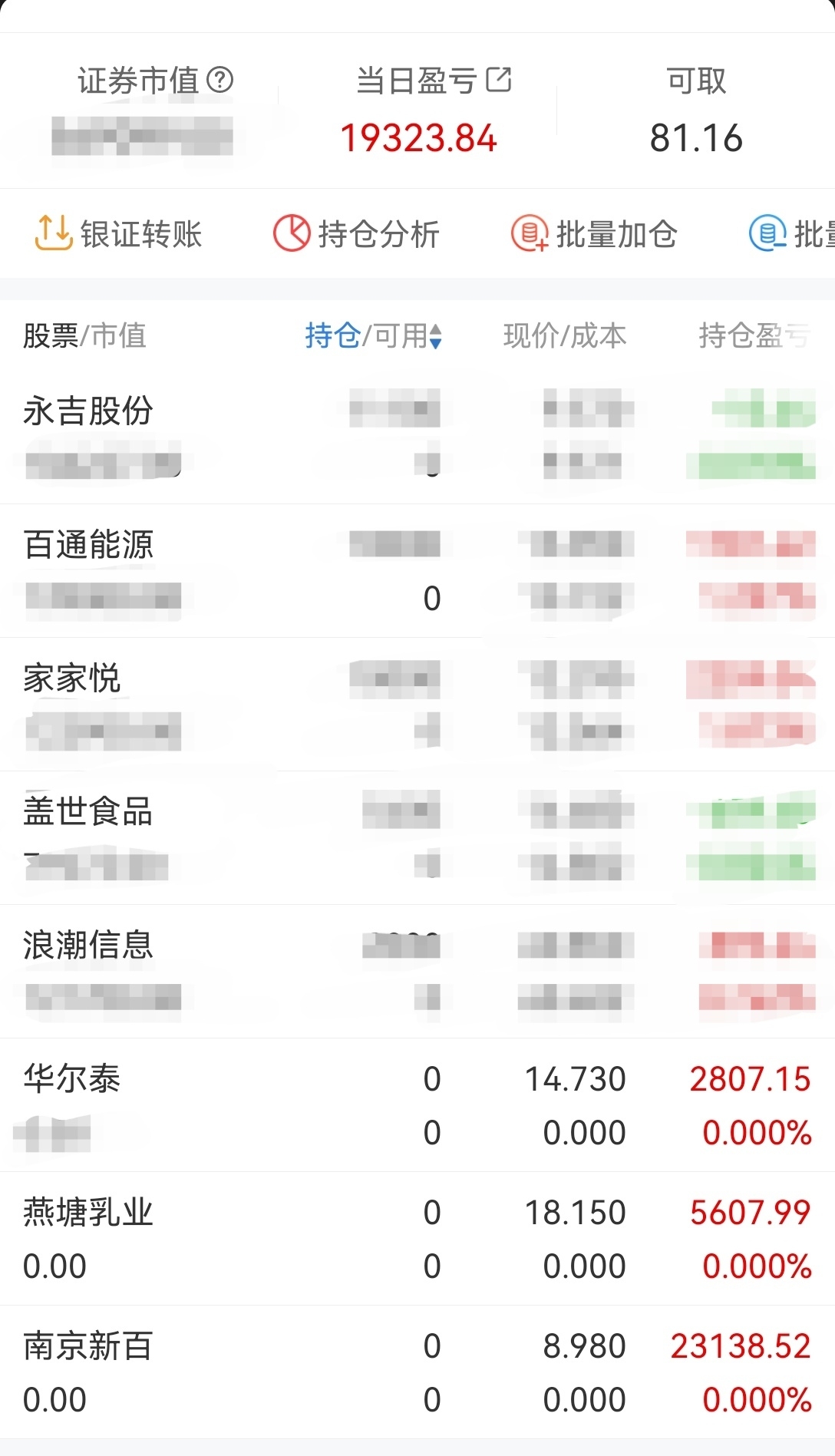 $南京新百(SH600682)$ $华尔泰(SZ001217)$ 南京新百开盘前直接挂涨停出了,前期压力位,不好判断,所以先出来了。华尔泰开盘冲高冲不上去清仓了,好股,等回调再进。燕塘乳业不给力,微红直接出来了。