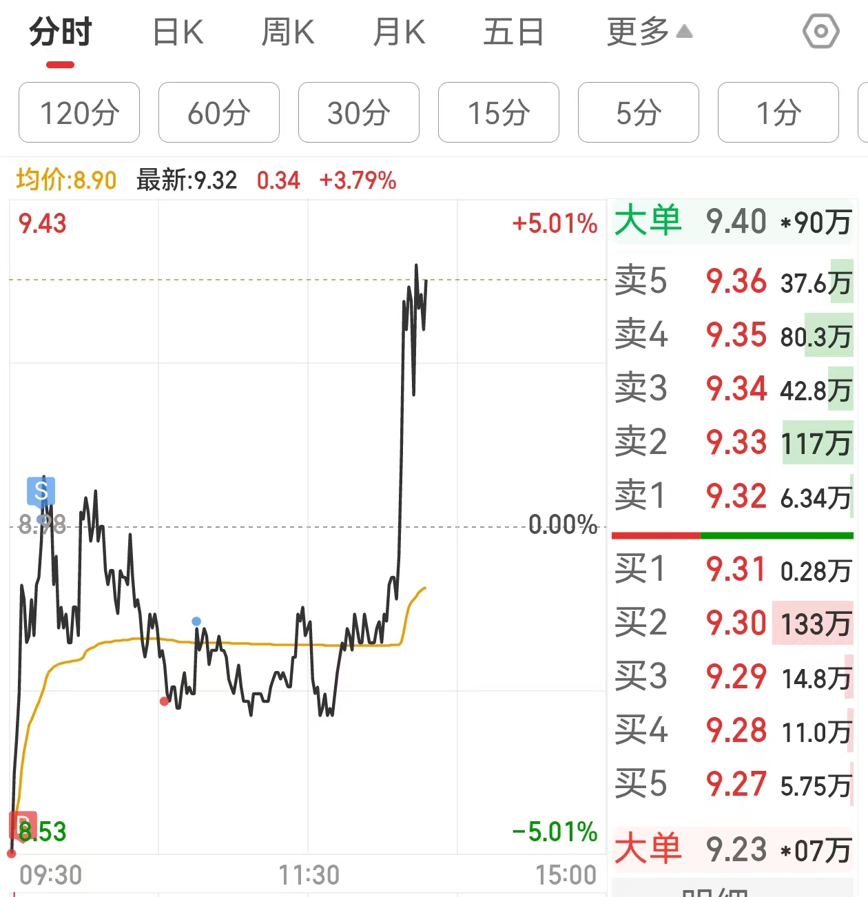 -5.01%拉到+5.01%,昨天做多的主力资金算力解套了
