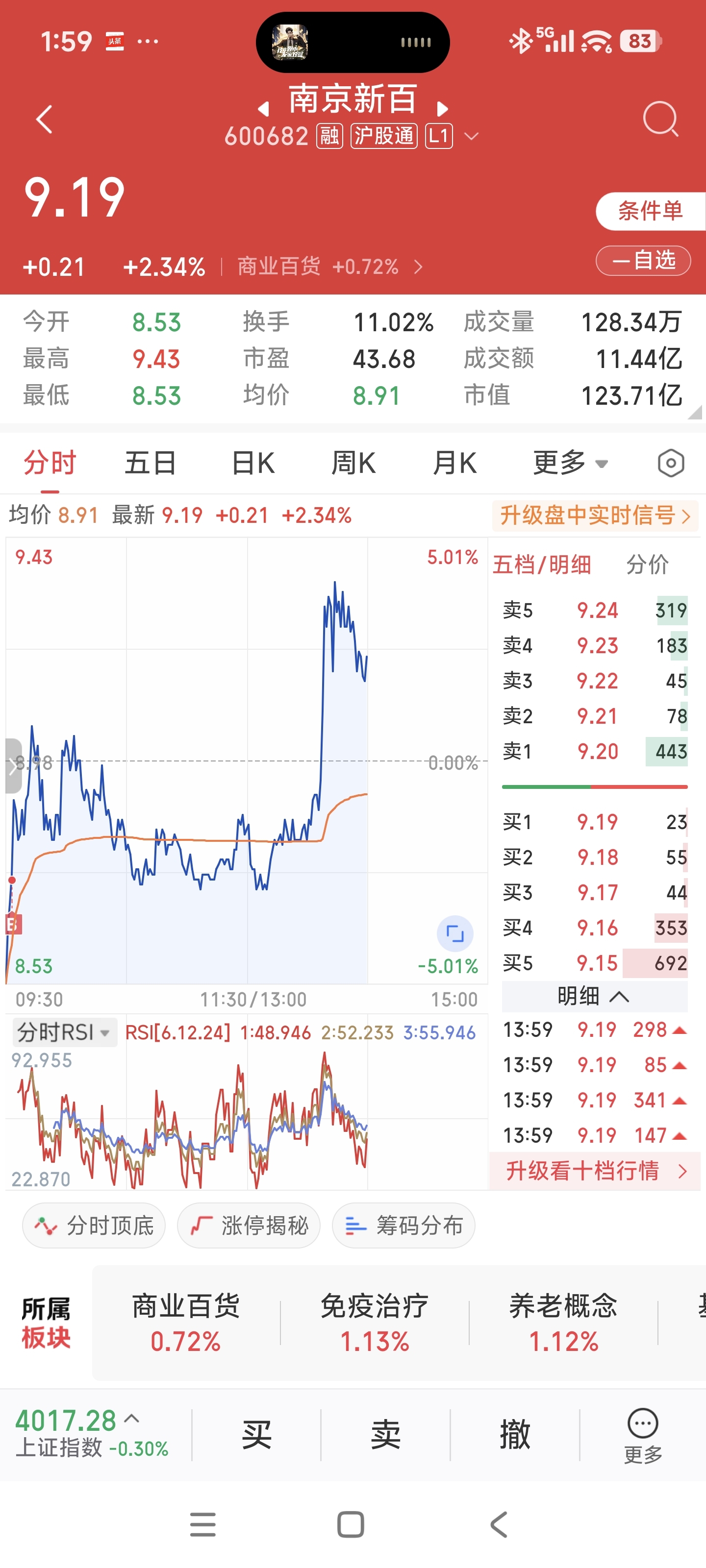 $南京新百(SH600682)$ 这票还会继续涨,看好这票,这个主力很好。