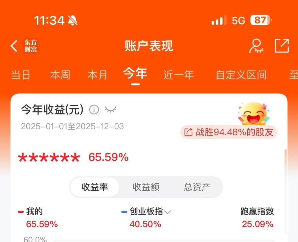 今天收益率65.59%,要是没有买南京新百,今年收益率可能75%以上~~