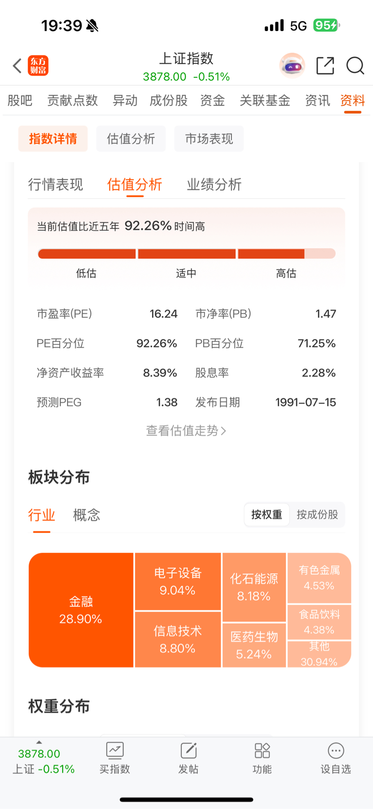 整个上证股票的市盈率16.24,南京新百市盈率36.32!
