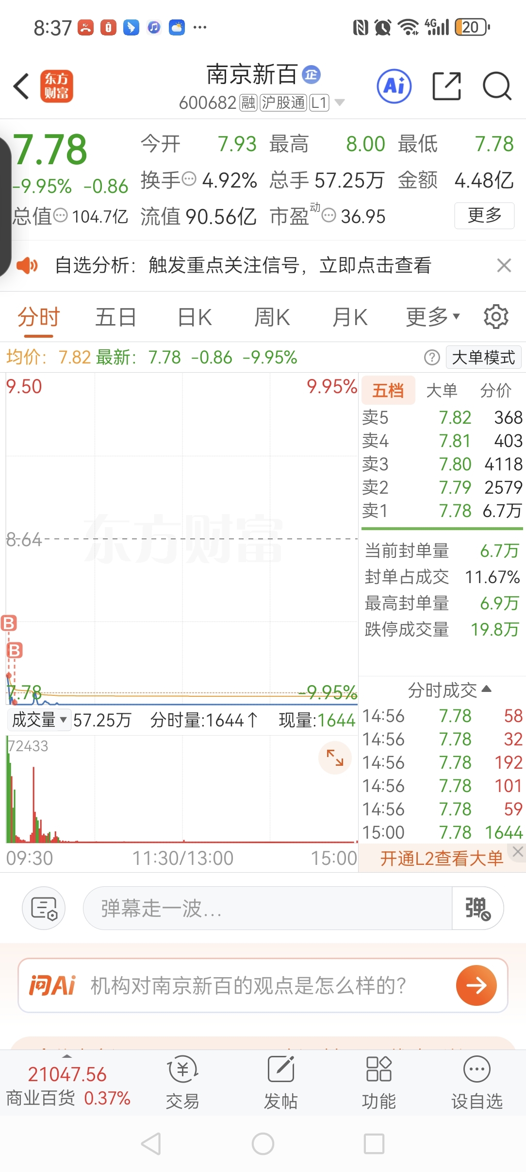 $南京新百(SH600682)$ 大家莫慌,今天我进来了