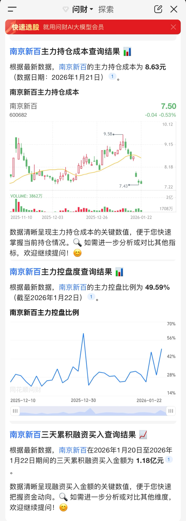 $南京新百(SH600682)$ 随便问了一下同花顺问财,数据是瞒不住的,有人在疯狂吃货