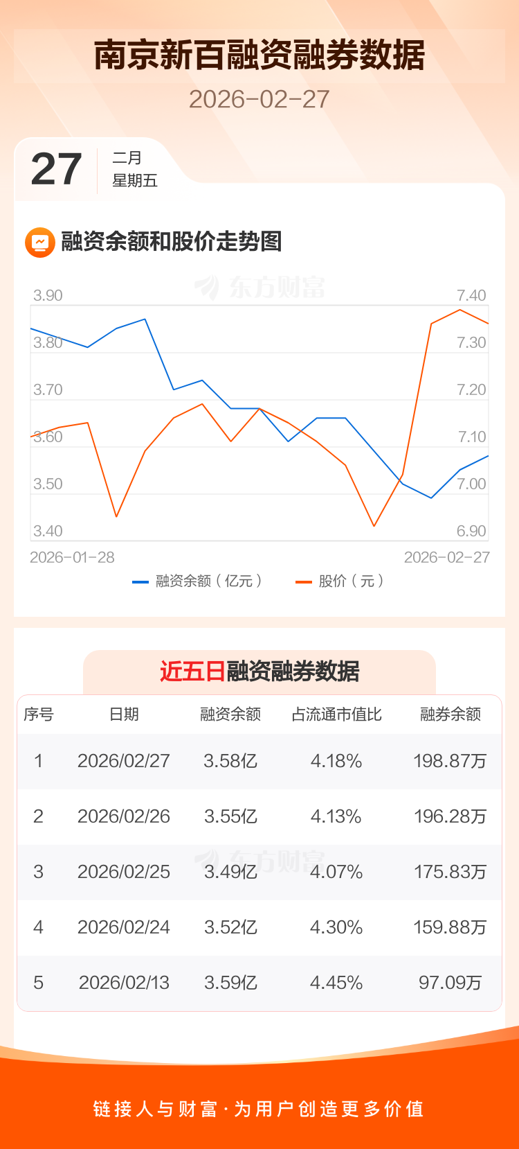 交易所最新数据显示,南京新百于2026年2月27日获融资买入1421.36万元,融资偿还1116.28万元,当日融资净买入305.09万元。目前,该股融资余额3.58亿,占流通市值比例为4.18%。