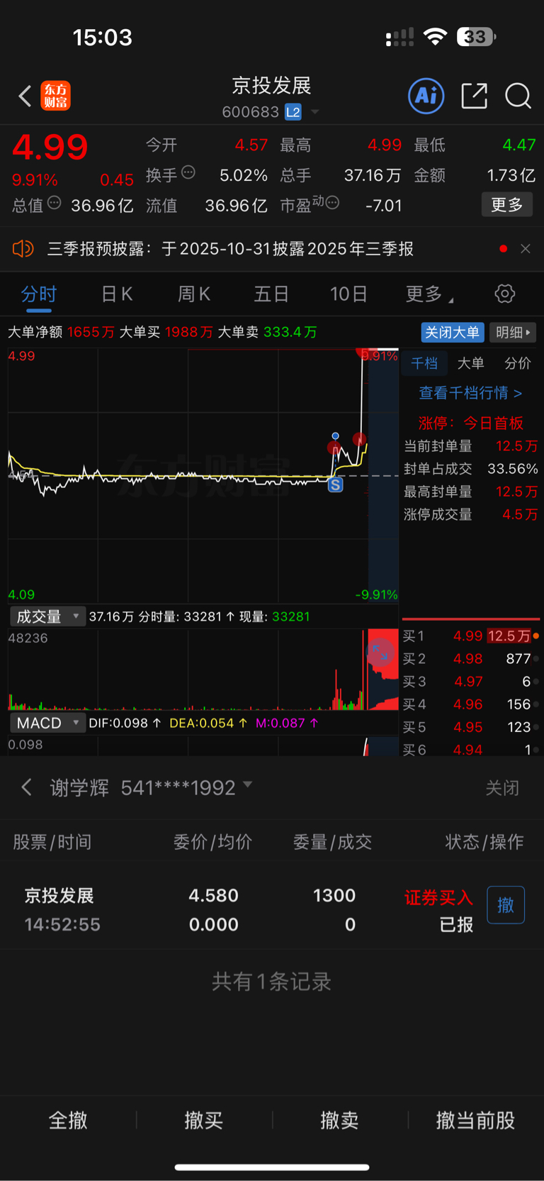$京投发展(SH600683)$ 马的,不该做T的