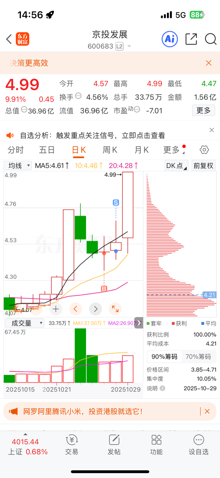 最近卖啥啥涨,尾盘看着你拉,没筹码只能看着拉上去,大盘连涨几天,我连亏几天,这4