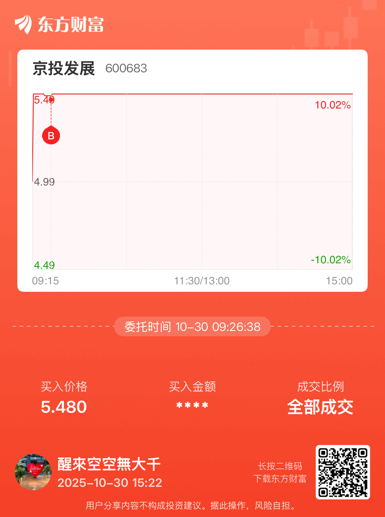$京投发展(SH600683)$ 今日账户收红