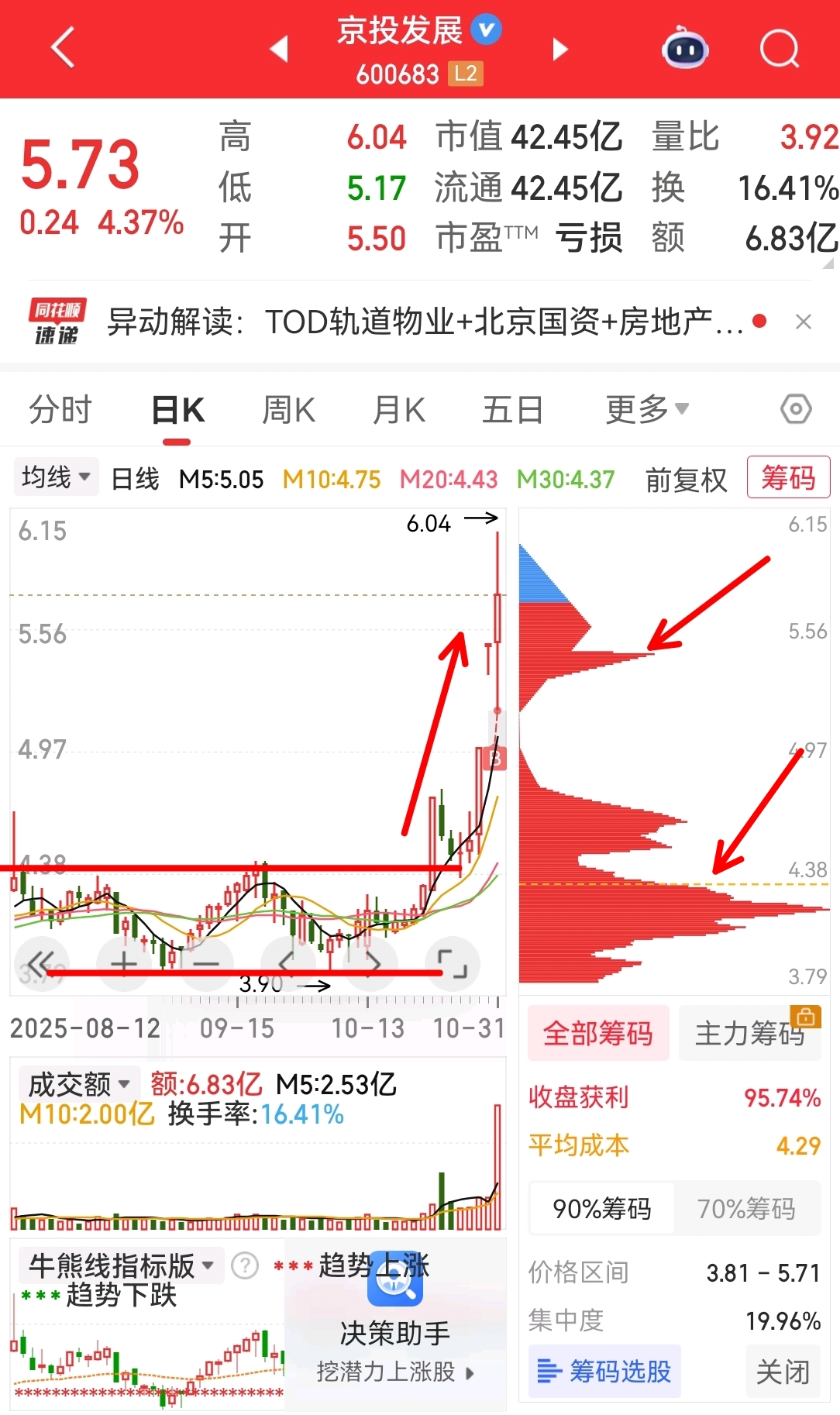 $京投发展(SH600683)$ 标准的箱体突破,底部筹码未松动,周五还有资金强势托底,第三板放量强分歧日走出了超预期走势,就该高看一眼