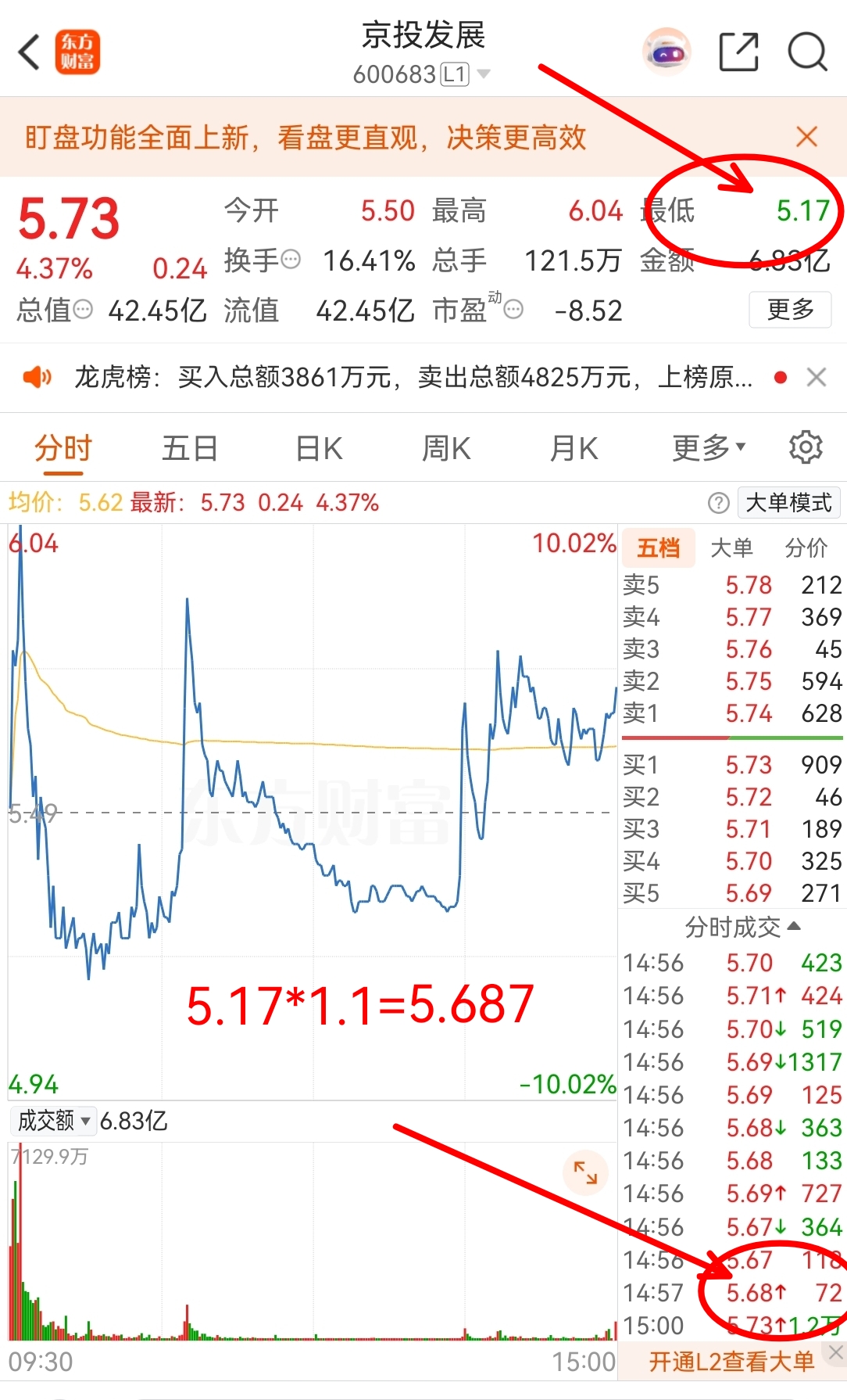 $京投发展(SH600683)$ 看似未板,其实以板,主力资金控盘明显