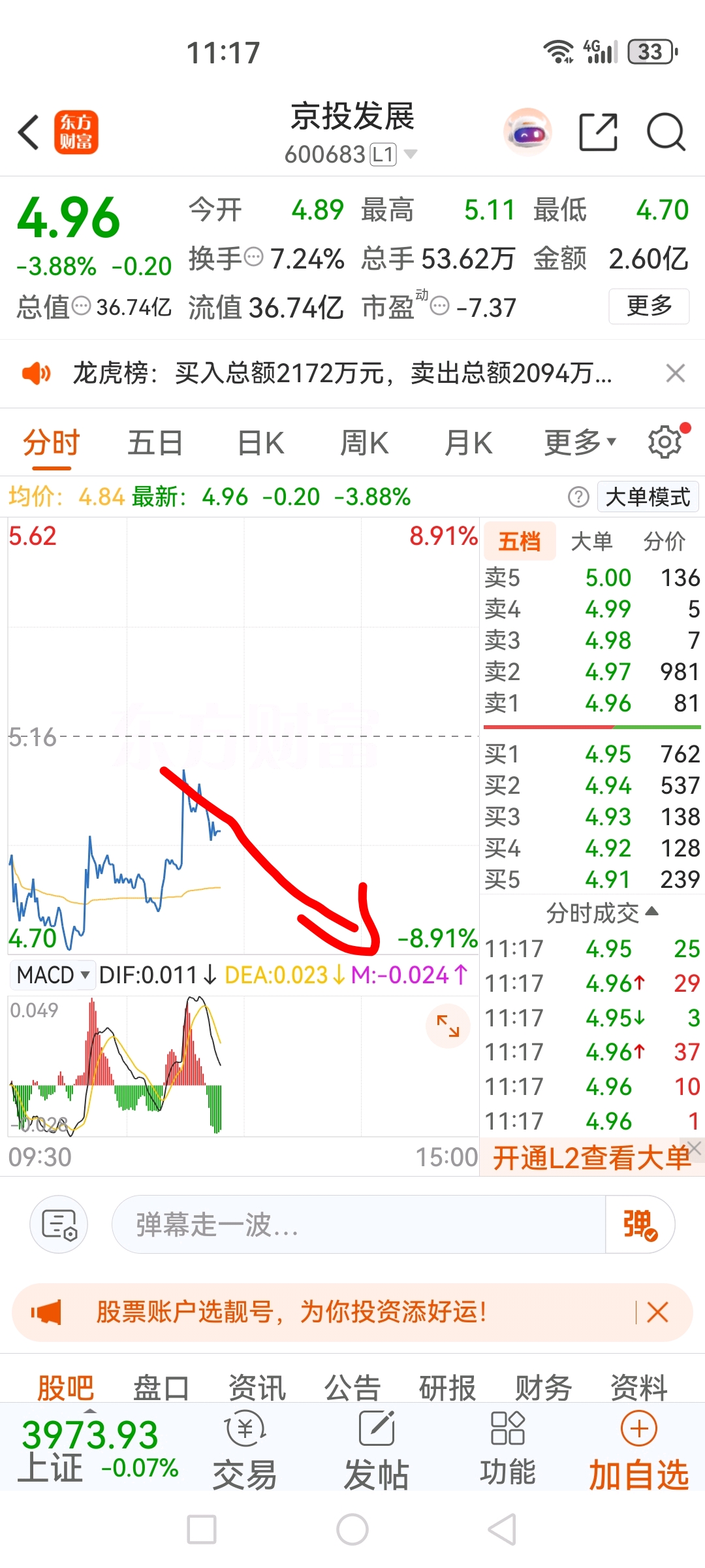 $京投发展(SH600683)$ 退到黄色均线,下方,能跑的赶紧跑