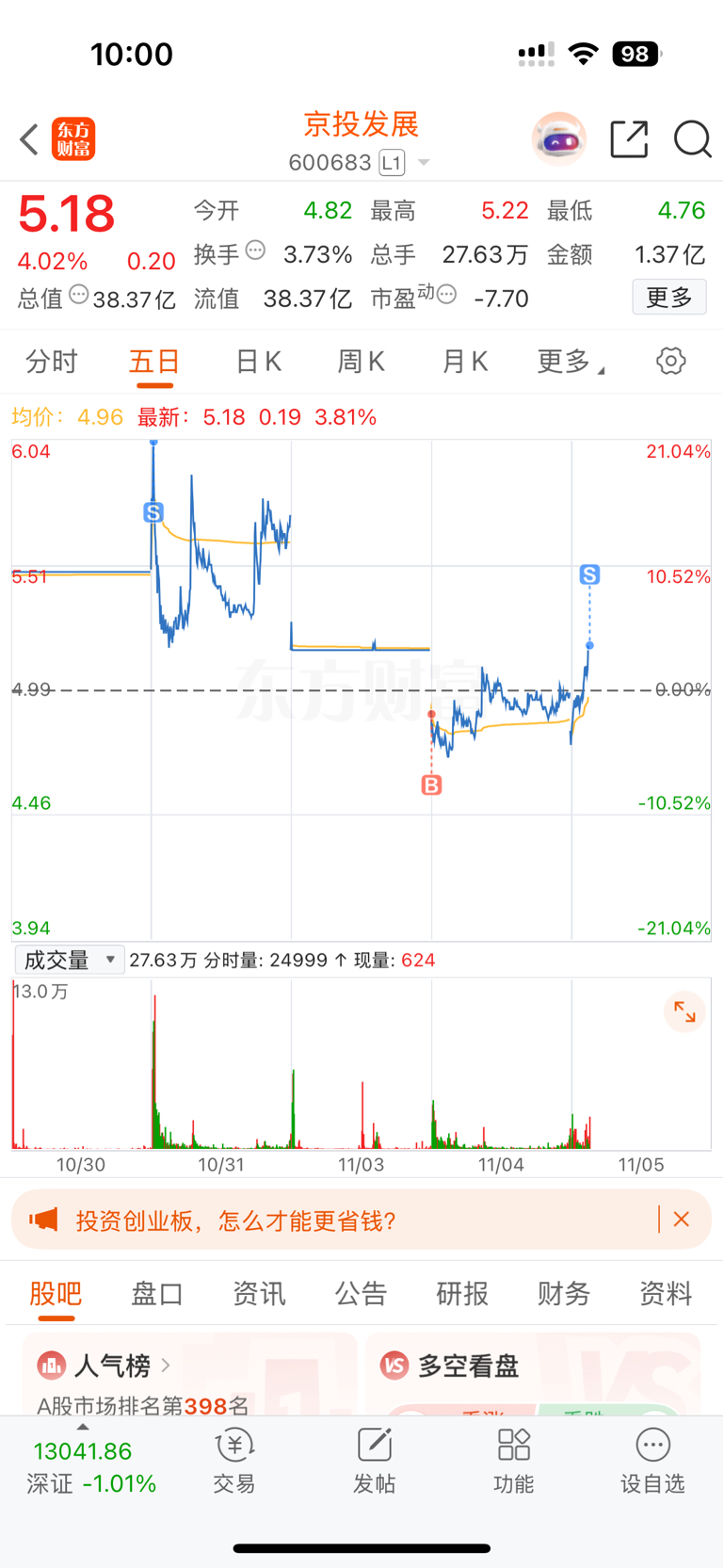 $京投发展(SH600683)$ 昨天我说今天保底三个点肉吃,是谁喷我来着?