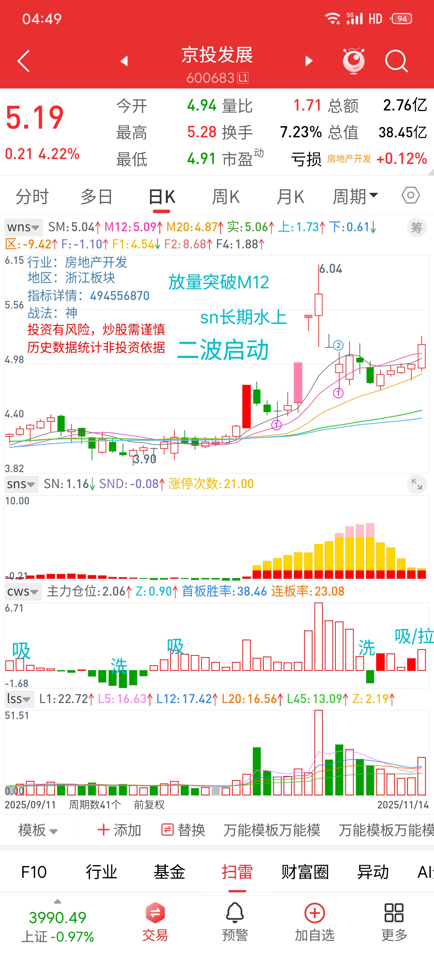 $京投发展(SH600683)$ 倍量突破M12,就是不知道能不能持续下去。