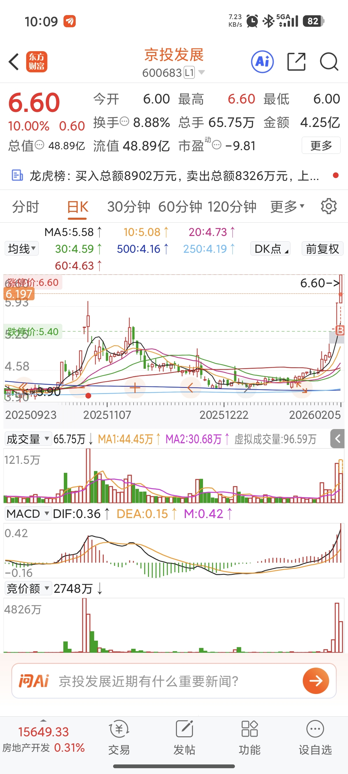 $京投发展(SH600683)$ 地产龙头,二板放量前方压力位几乎释放完了,今天竞价开的还行,带量往上冲就可以买了