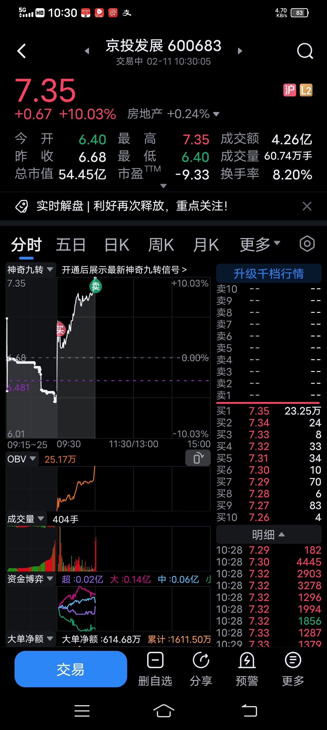$京投发展(SH600683)$ 底吸高抛稳健操作