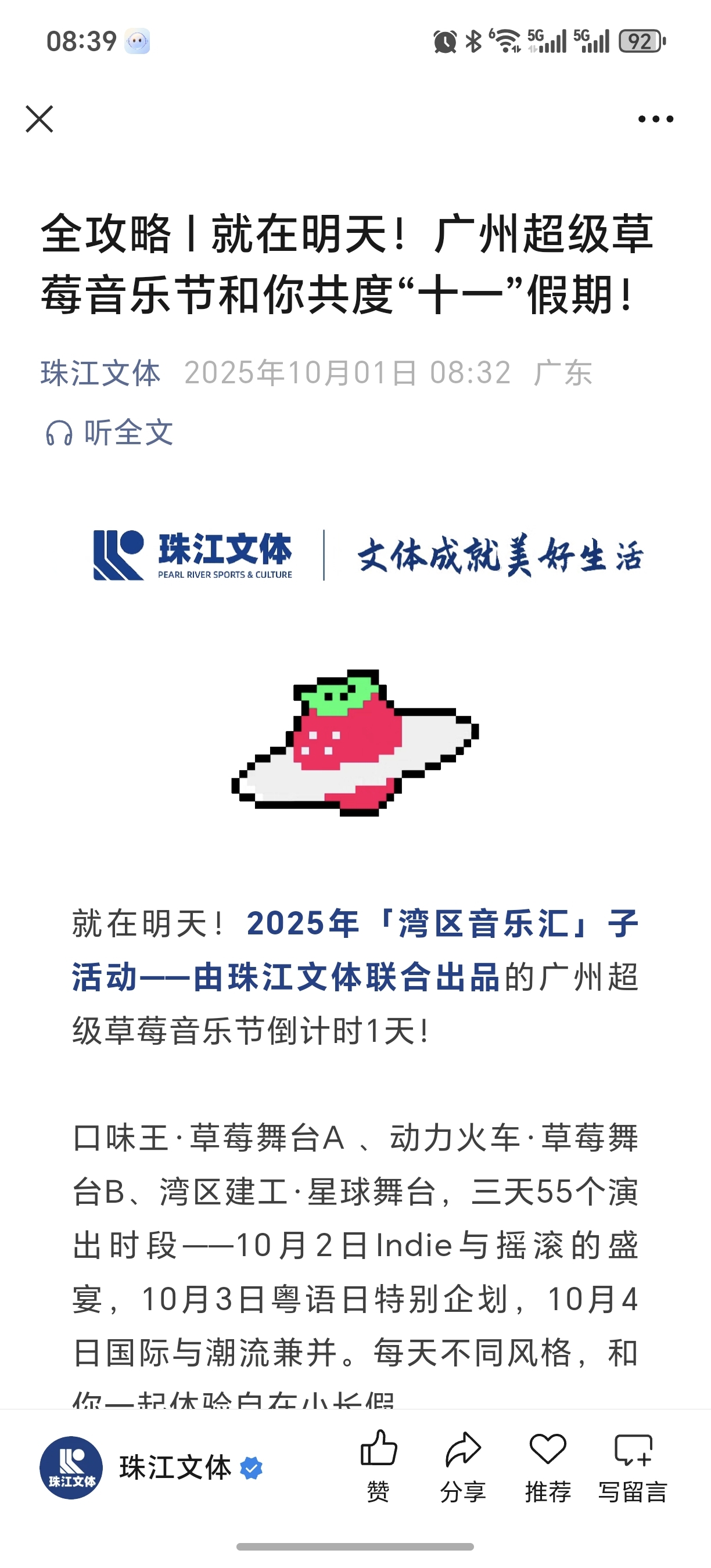 $珠江股份(SH600684)$ 就在明天!广州超级草莓音乐节和你共度“十一”假期!