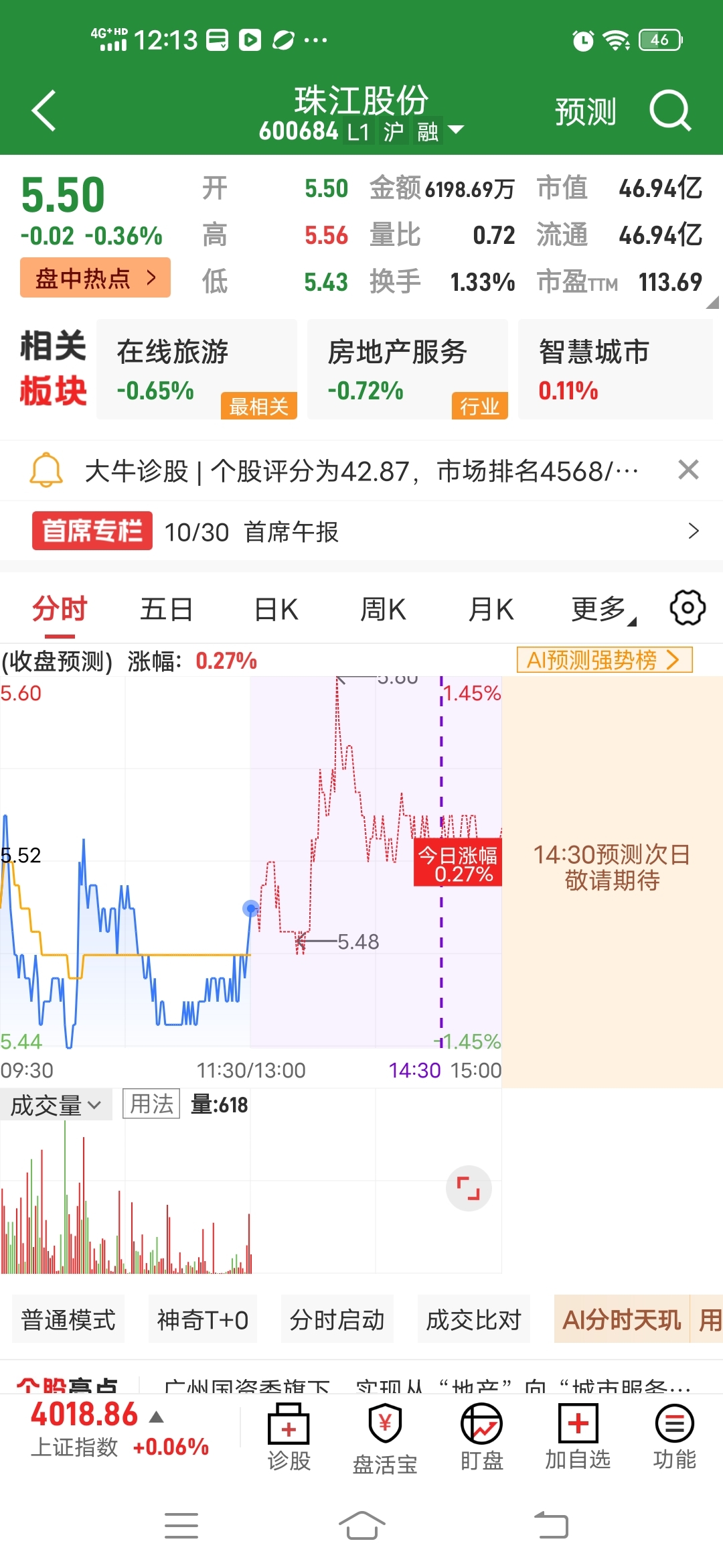 $珠江股份(SH600684)$ 这个是下午预测,都魔怔