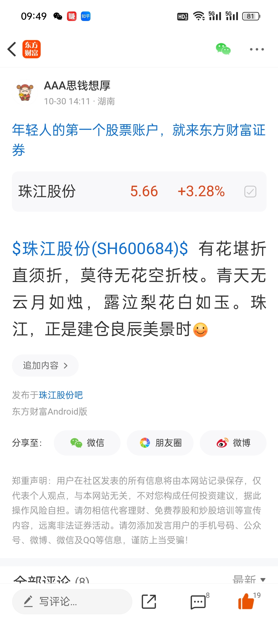 $珠江股份(SH600684)$ 昨天发帖建议5.4毛多买入,恰到好处,不搞马后炮