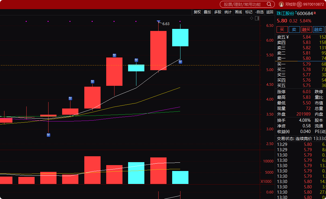 坚定持有,月月做T,闷声赚钱!这是珠江股份的月K线,大家猜猜我的成本是多少?