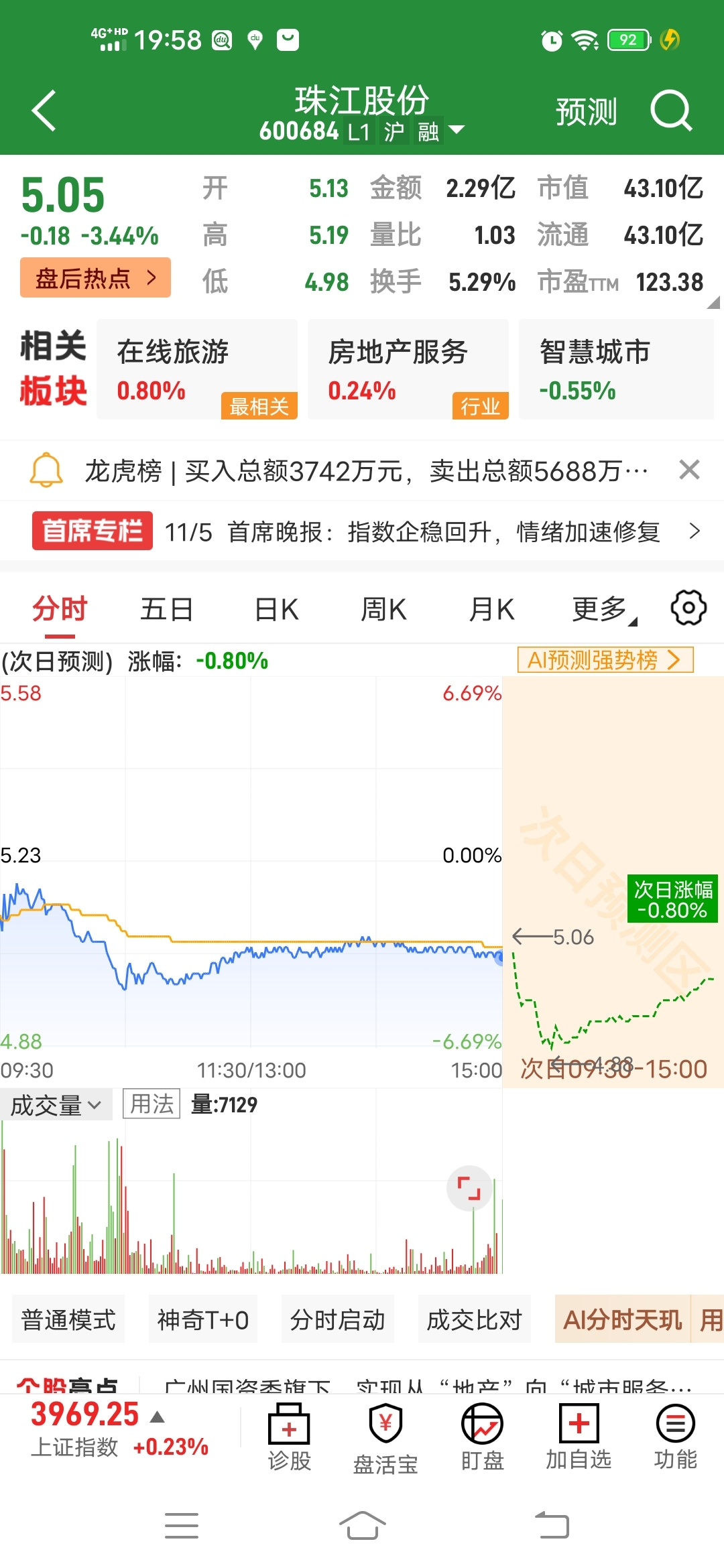 $珠江股份(SH600684)$ 明天预测,,,心都凉透了