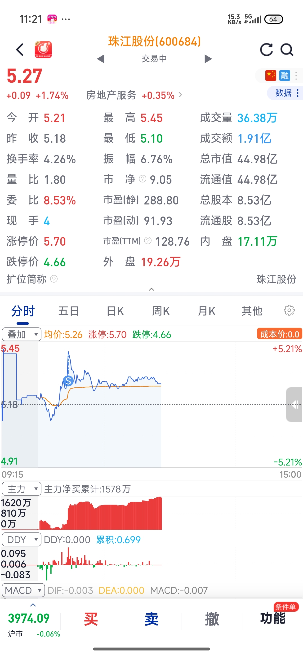$珠江股份(SH600684)$ 跌停价买的,还好跑得快
