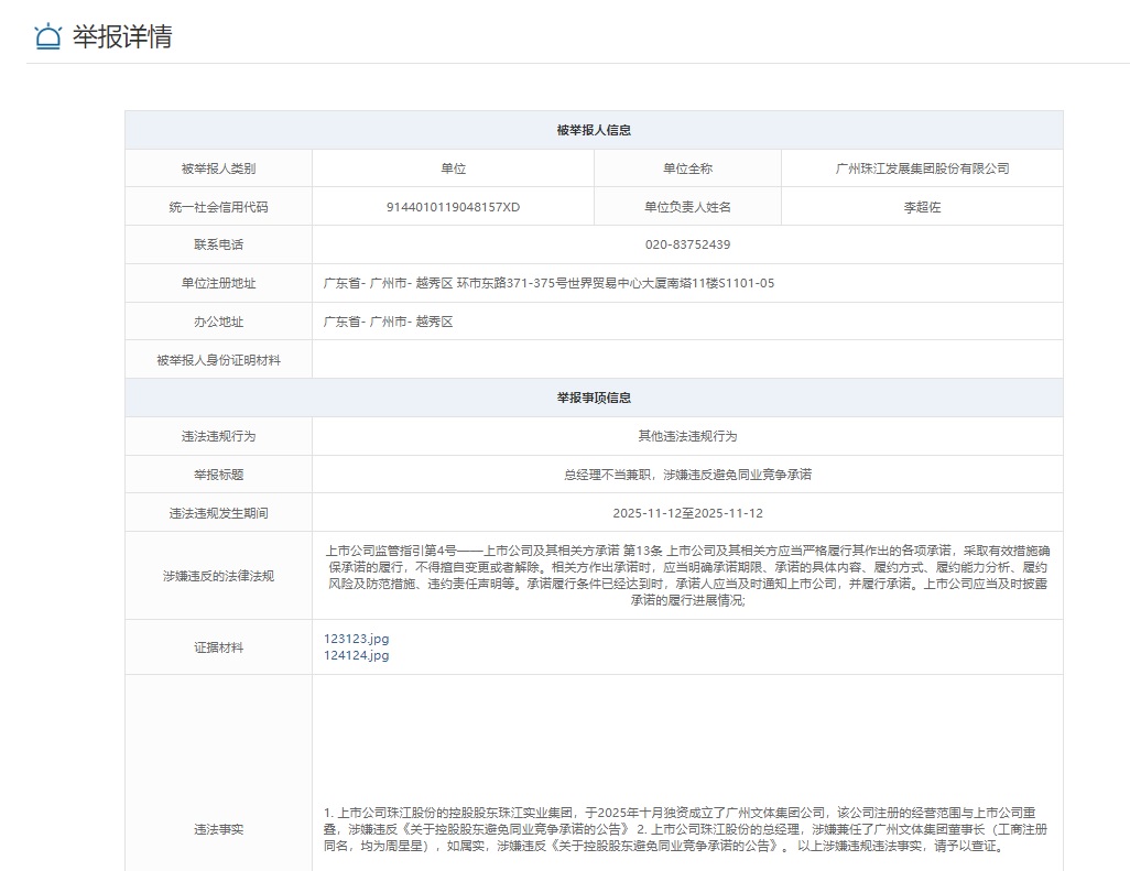前几天问董秘,控股股东珠江实业集团成立了广州文体任命周星星做董事长是否涉嫌违反同