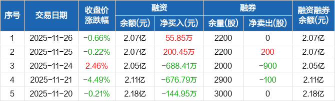 珠江股份:融资净买入55.85万元,融资余额2.07亿元(11-26)