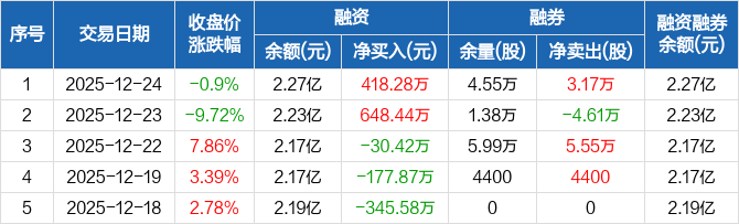 珠江股份:融资净买入418.28万元,融资余额2.27亿元(12-24)