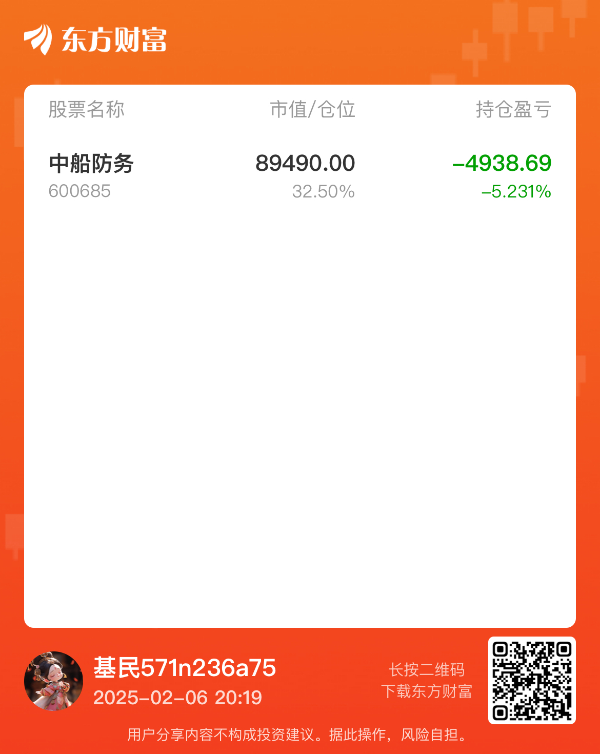温馨提示: 1.根据《证券法》规定,禁止编造、传播虚假信息或者误导性信息,扰乱证券市场;2.用户在本社区发表的所有资料、言论等仅代表个人观点,与本网站立场无关,不对您构成任何投资建议。用户应基于自己的独立判断,自行决定证券投资并承担相应风险。《东方财富社区管理规定》