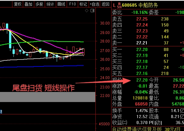 $中船防务(SH600685)$ 尾盘扫货 短线操作